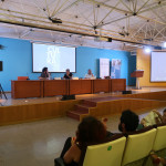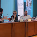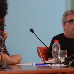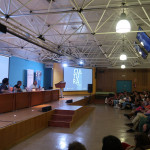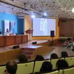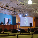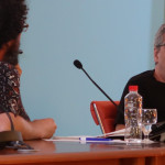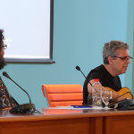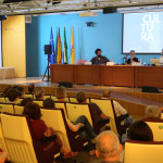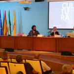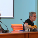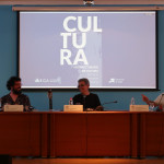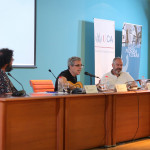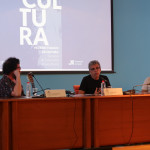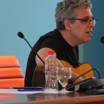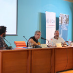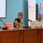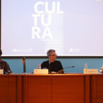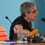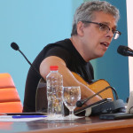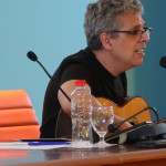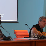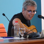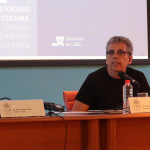 El Vicerrectorado de Cultura de la Universidad de Cádiz, a través del servicio de Extensión Universitaria, ha cerrado el ciclo Diálogos con Voz Propia con la presencia del cantautor Pedro Guerra, en compañía del vicerrector de Cultura, José María Pérez Monguió, en el aula Magna de la Facultad de Filosofía y Letras del campus de Cádiz. Una actividad, coordinada por Fernando Lobo, que cuenta con el patrocinio de la Diputación Provincial de Cádiz. Un aforo casi completo despide la última de las citas de este programa en su segunda edición, que combina el formato de entrevista, charla con piezas musicales.