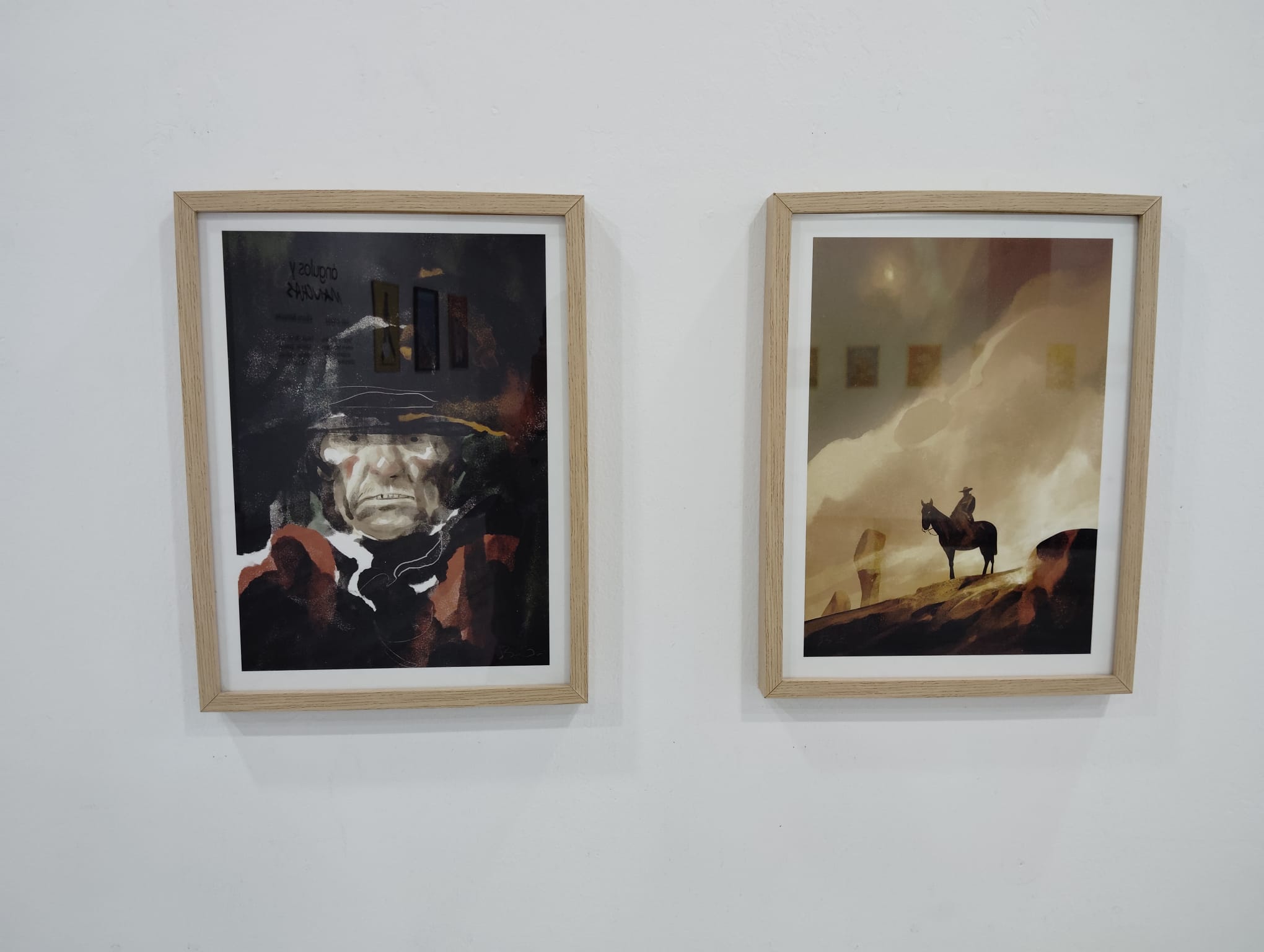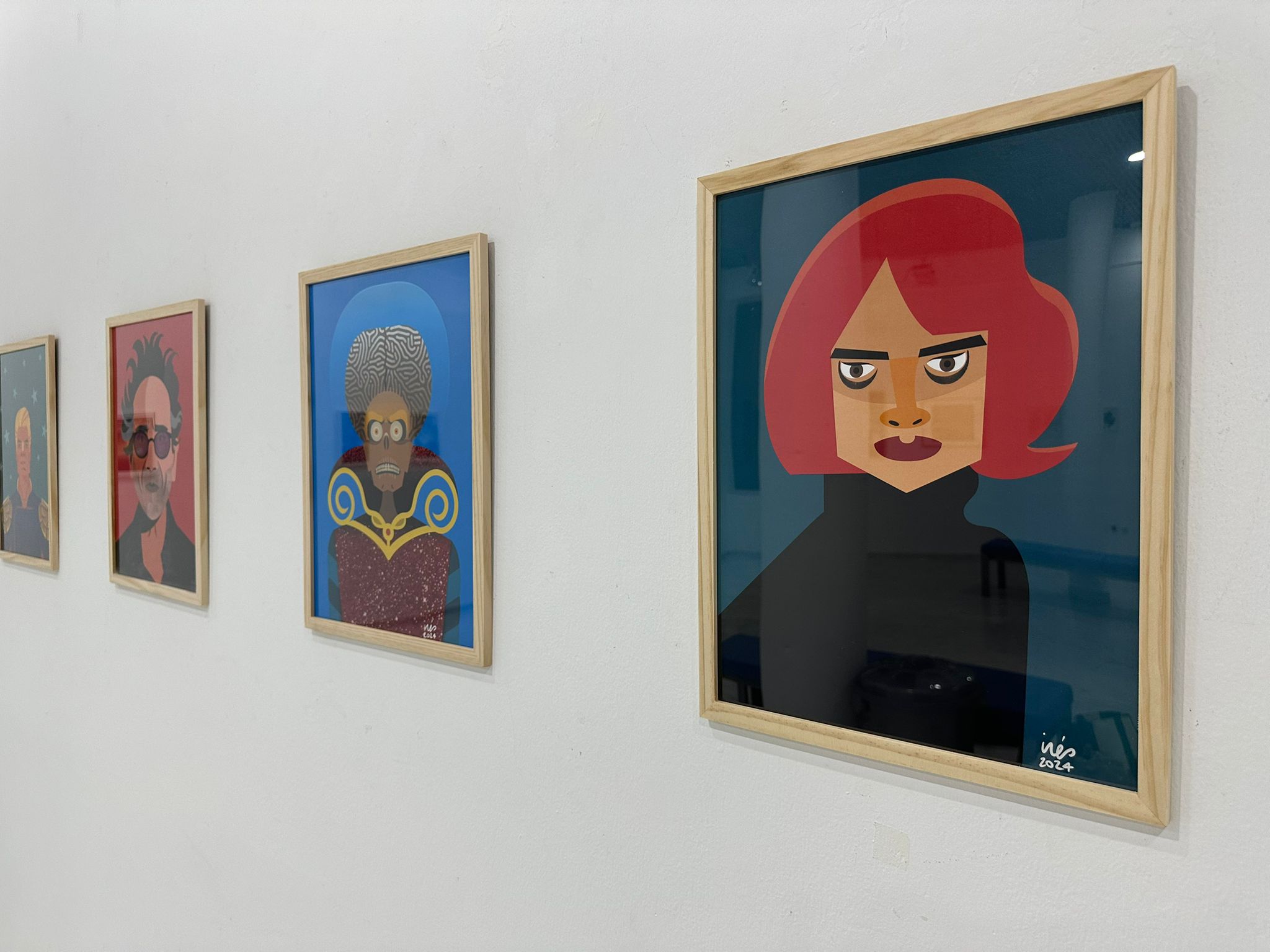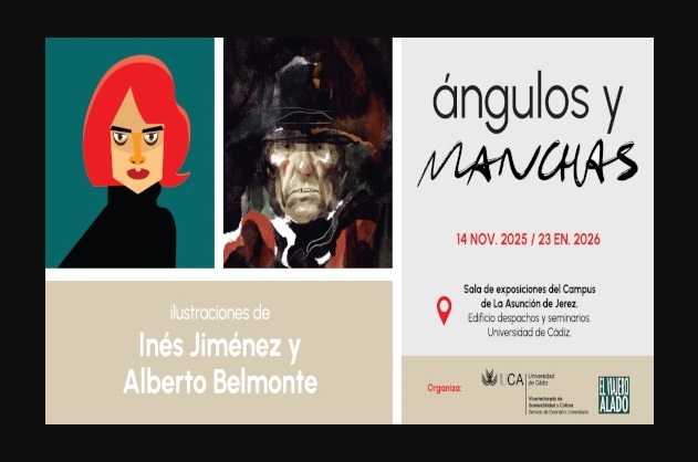 En Ángulos y Manchas confluyen dos trayectorias artísticas distintas pero complementarias. La gaditana Inés Jiménez expone por primera vez sus obras, caracterizadas por un estilo elegante, esquemático y de color plano. Sus ilustraciones presentan tanto personajes anónimos como figuras de ficción y celebridades del mundo del cine, la música y la moda, junto con escenas cotidianas que reflejan su particular visión estética. Por su parte, el jerezano Alberto Belmonte, dibujante de cómics e ilustrador de amplia experiencia, presenta una selección de trabajos que destacan por su fuerza narrativa y su capacidad para crear atmósferas envolventes que transportan al espectador a mundos imaginarios.
