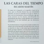 Las caras del tiempo es un recorrido por la historia reciente no solo de nuestro país, sino también del resto del mundo, a través de magníficos retratos realizados a reconocidas personalidades del ámbito de la cultura y de la política. Los rostros de filósofos, artistas, músicos, escritores, políticos, entre otros muchos, fueron captados por el sensible objetivo de la cámara fotográfica de Ricardo Martín a lo largo de más de 40 años de carrera profesional. La selección elegida para esta muestra reúne los retratos de Paco de Lucía, Camarón de la Isla, Rafael Alberti, Antonio Gala, Dolores Ibárruri, Adolfo Suárez, Gloria Fuertes, José Manuel Caballero Bonald, Carmen Martín Gaite, Lola Flores, Enrique Tierno Galván, Martirio o Victoria Abril. Las fotos están acompañadas por textos de Antonio Muñoz Molina, cuyo retrato también figura en esta selección de la obra.