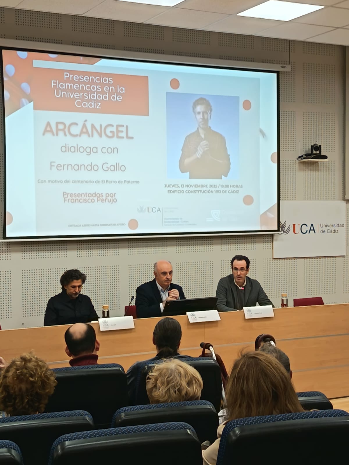 En esta ocasión, y con motivo del centenario del nacimiento de El Perro de Paterna, la sesión contó con la participación del reconocido cantaor onubense Arcángel, dialogando con Fernando Gallo. Ambos fueron presentados por Francisco Perujo en un acto que tuvo lugar el jueves 13 de noviembre, a las19:00 horas, en la Sala Argüelles del Edificio Constitución 1812 (Cádiz).