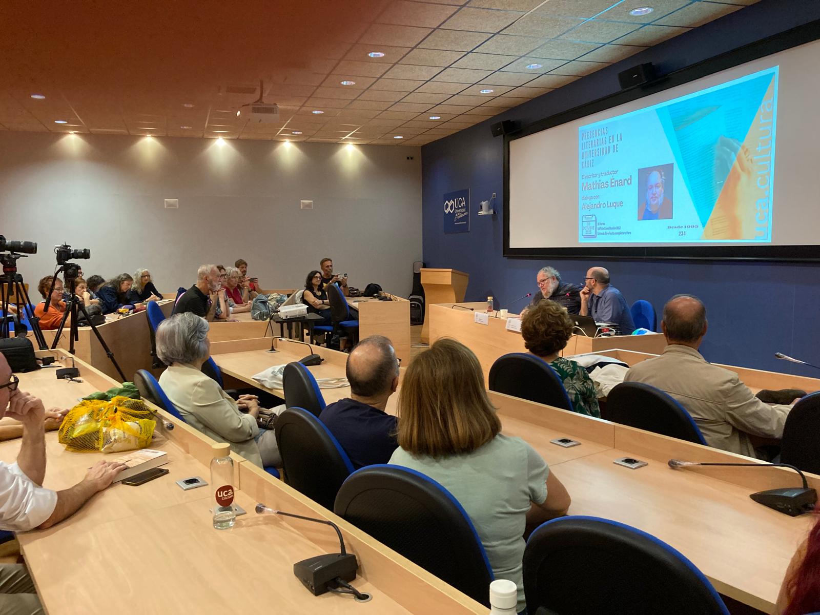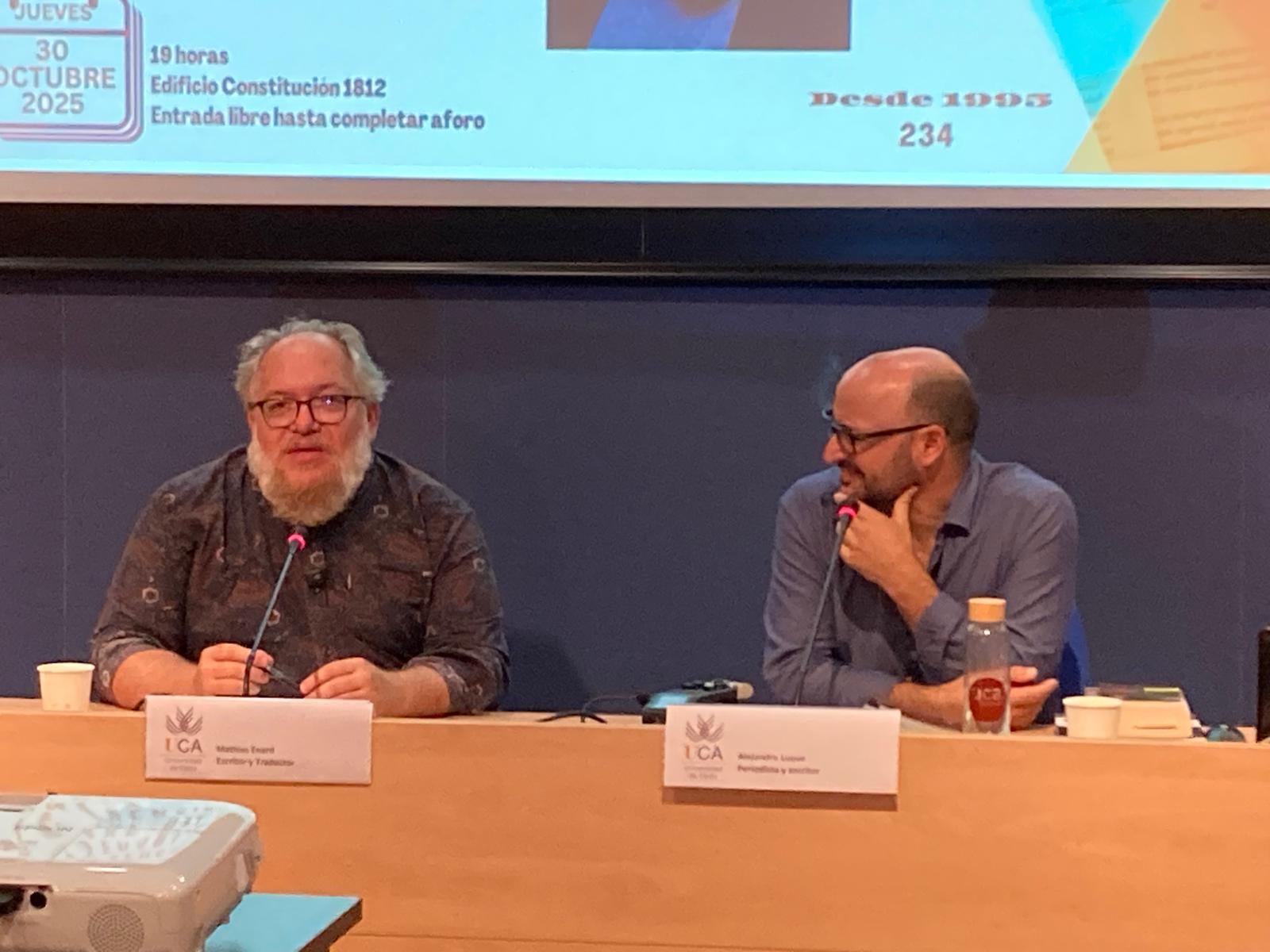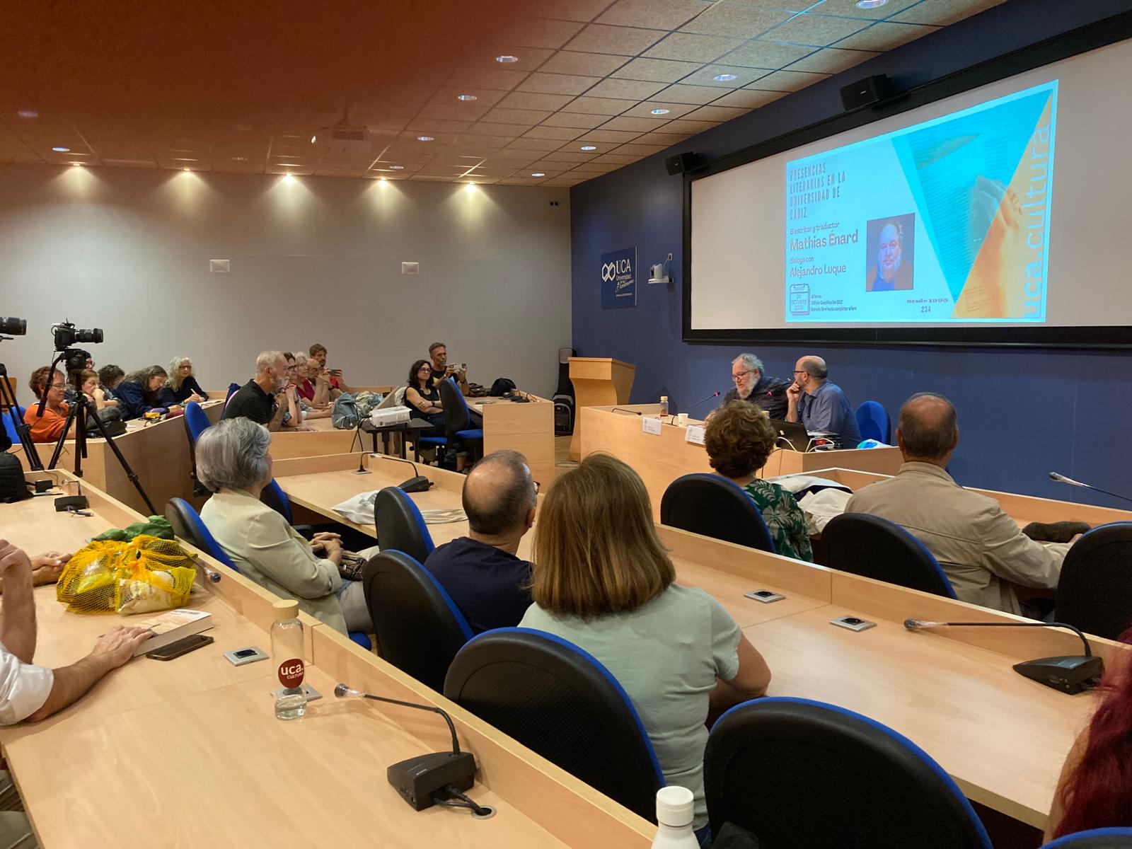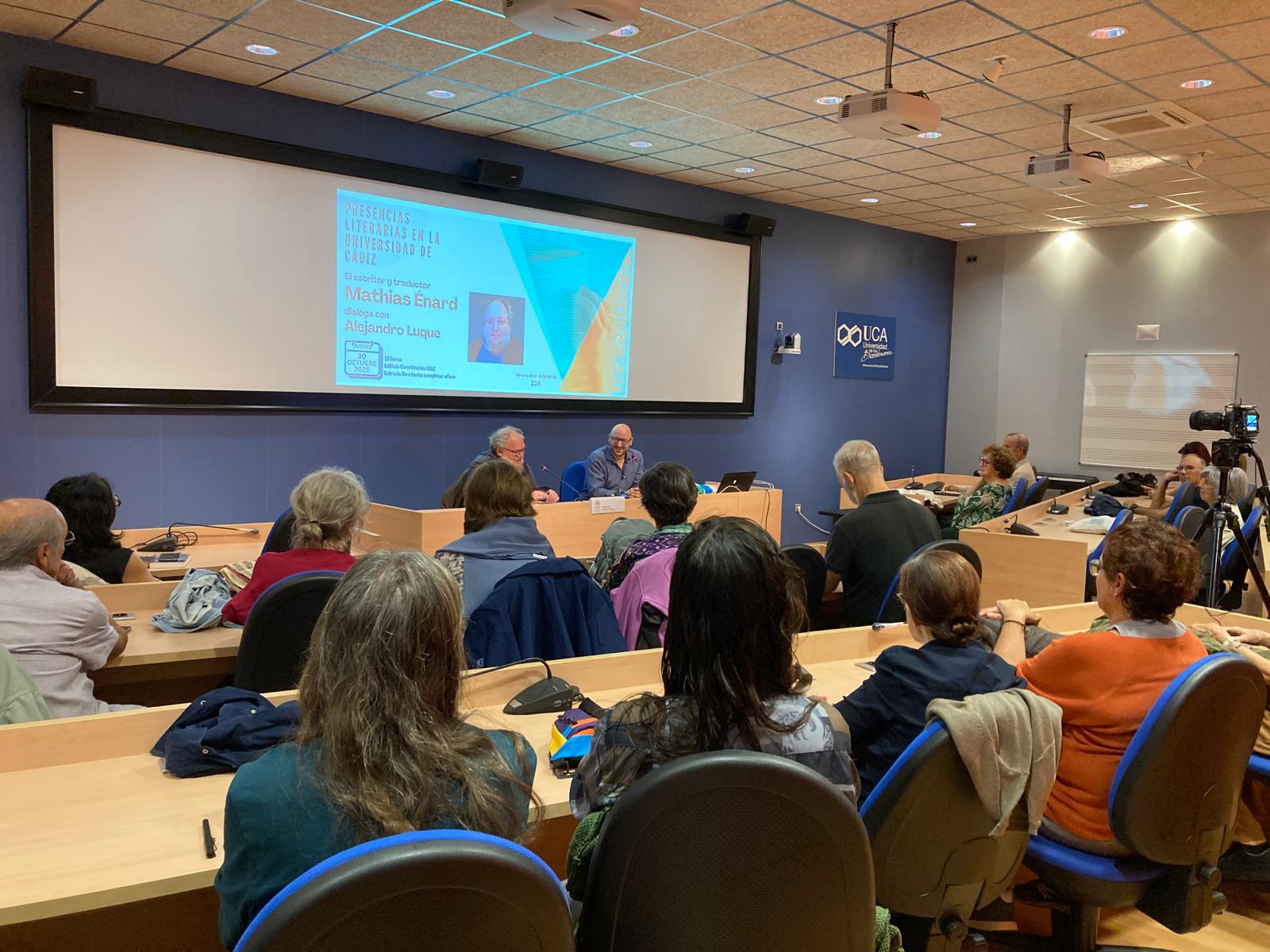 El Servicio de Extensión Universitaria del Vicerrectorado de Sostenibilidad y Cultura de la Universidad de Cádiz organizó una nueva cita, en el edificio Constitución 1812, del ciclo Presencias Literarias en la Universidad de Cádiz. La cita fue el 30 de octubre con el escritor y traductor francés Mathias Enard que dialogó con el periodista Alejandro Luque.